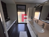 Côté équipements, la maison bénéficie de prestations modernes assurant un excellent confort de vie : chauffage au sol électrique, cheminée à bois, climatisation réversible par pompe à chaleur, double vitrage ainsi que des volets roulants électriques.